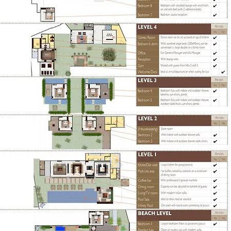 7 חדרים שלה כוללים טלוויזיה עם מסך שטוח וערוצי לוויין, כספת פרטית ופטיו. ישנם בנוסף 7 חדרי שינה ו-7 חדרי אמבטיה עם מייבש שיער ומגבות. חדר האמבטיה כולל מקלחת ואמבטיה ומציע נוחיות לאורחים.